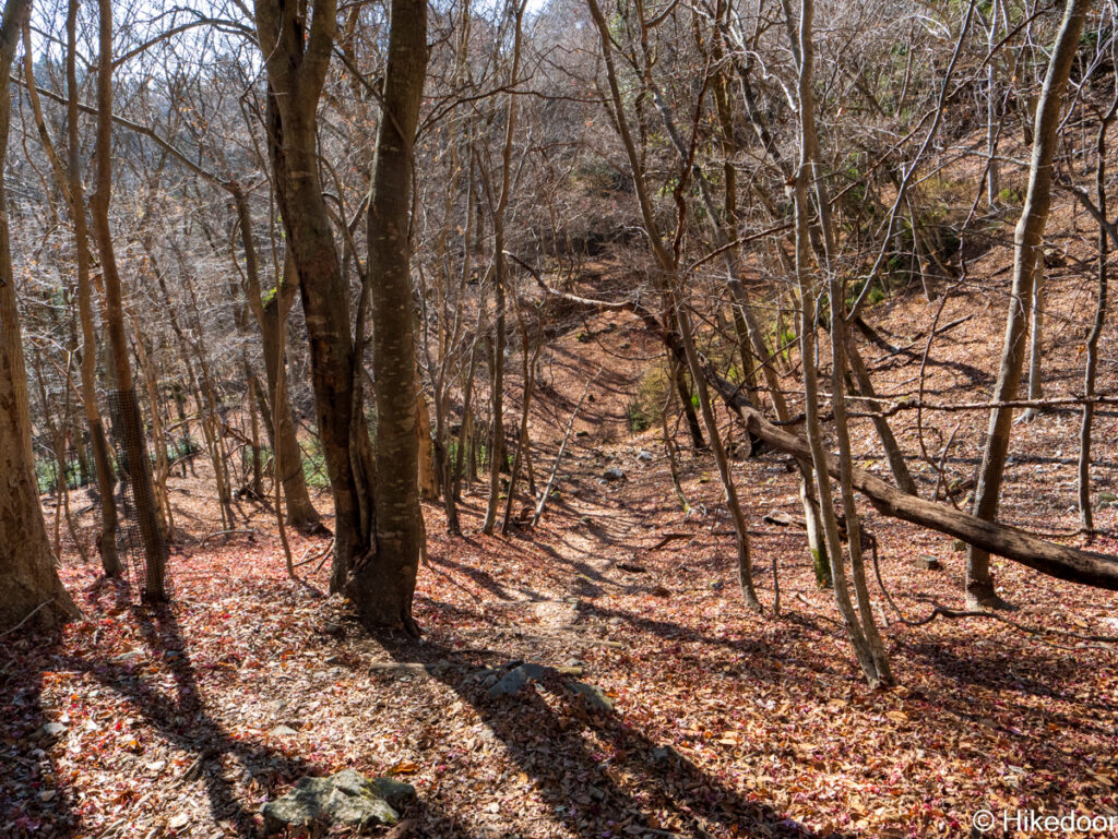 ゴーラ沢から分岐までは急斜面になりますが、九十九折&ステップができているので、そこまできつく無いです。崩壊や激しい段差もありません。