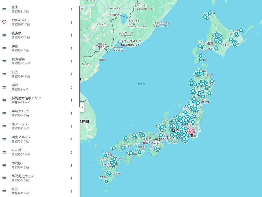 ここに登録された地点のほとんどは実際に行っています。地域ごとにリストを分けています。